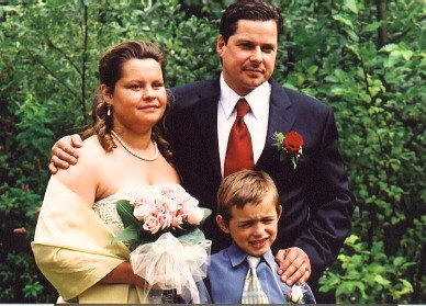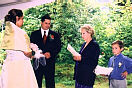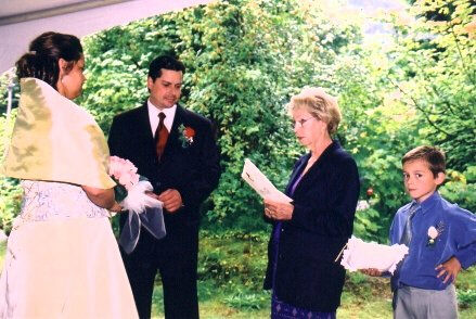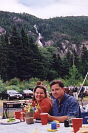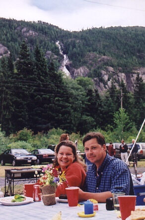| From Greg: "They had a beautiful wedding under a canopy at a campsite near the town of Squamish, about 60 miles north of Vancouver. I'm guessing there were about 50 family members and friends in attendence, including Maria's mother, Mrs. Peņa, from New York. It was sort of a picnic wedding, with lots of good food and drink, and a good time was had by all!" |